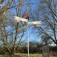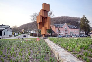 La commune de Redange a participé au financement des infrastructures cyclables et du parking, et a également pris en charge l’aménagement paysager autour du rond-point. Au centre du giratoire se trouve une sculpture de Jans Assy, symbolisant les liens entre les neuf communes du canton.
