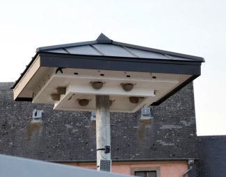 À proximité du rond-point, une tour à hirondelles, installée par SICONA, a également été mise en place. En effet, les méthodes de construction modernes offrent de moins en moins de possibilités naturelles de nidification pour ces oiseaux.